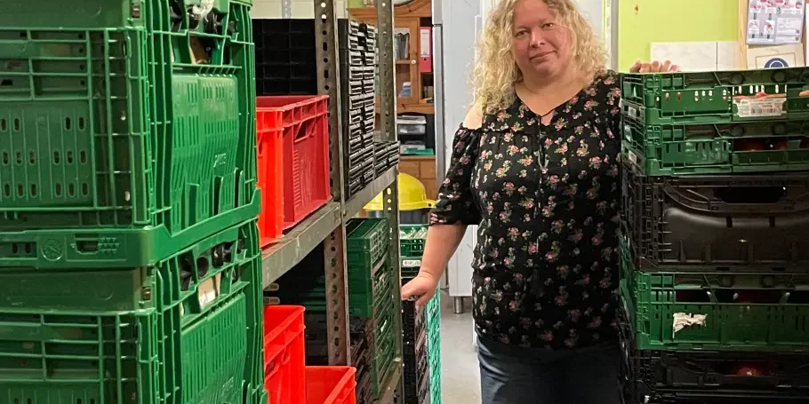 Und die Lagerfläche der Neumünsteraner Tafel dient vor allem für Unverderbliches wie Kaffee, Infektionsmittel, Masken und ähnliche Dinge. Die Ausgabe der frischen Waren an Bedürftige entlastet dies nicht. Sie findet ebenso wie das Sortieren auf dem Hinterhof in äußerst beengten Verhältnissen statt. Ein Kühllager für das Frischhalten von Lebensmitteln ist in den Räumen der Tafel ebenfalls nicht realisierbar – auch aus Kostengründen nicht. Selbst Arpes Büro steht mittlerweile voller Stapelkisten. Die Mitarbeiter nennen es scherzhaft das „Erstmal-Büro“ – „weil dort alles erstmal zwischengelagert wird“, sagt die Tafel-Leiterin.