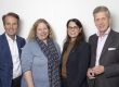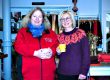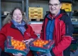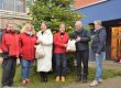 Christina Arpe (links), Vorsitzende der Tafel Neumünster, und Helfer Thomas Henning nehmen den Spendenscheck von Tanja Rieger und Jonas Römer entgegen.